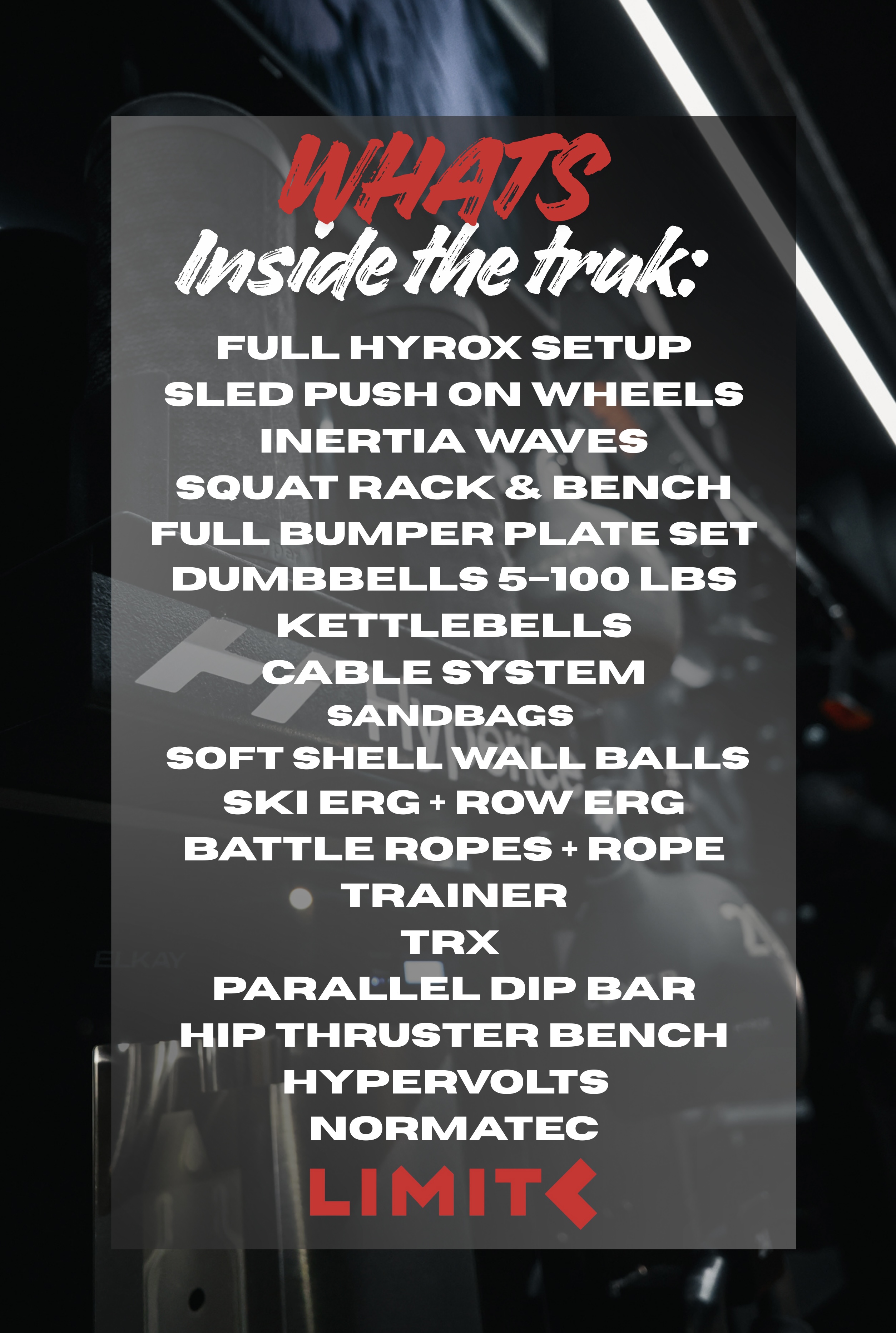 HOST YOUR TRAINING SESSIONS ANYWHERE USING OUR FULLY EQUIPPED MOBILE GYM.